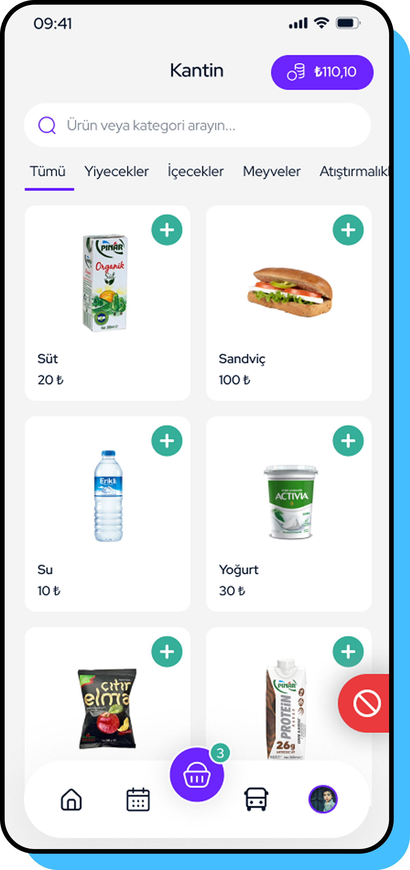 Veli uygulamasından belirli bir ürün seçip sipariş oluşturduğunuzda, bu sipariş sistem üzerinden doğrudan kantine iletilir. Çocuğunuz teneffüste kantine gittiğinde görevli, siparişi sistemde görür ve yalnızca o ürünü teslim eder. Harcama tutarı otomatik olarak bakiyeden düşülür ve tarafınıza anında bildirim gönderilir.