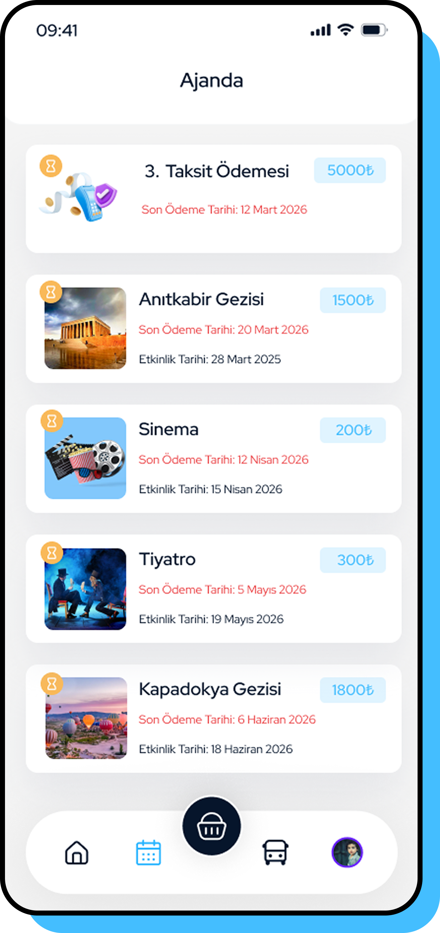 Tüm okul ödemelerini — etkinlik, gezi, taksit ve bakiye yükleme dahil — kredi kartı veya havale/EFT ile hızlı ve güvenli bir şekilde gerçekleştirebilirsin.